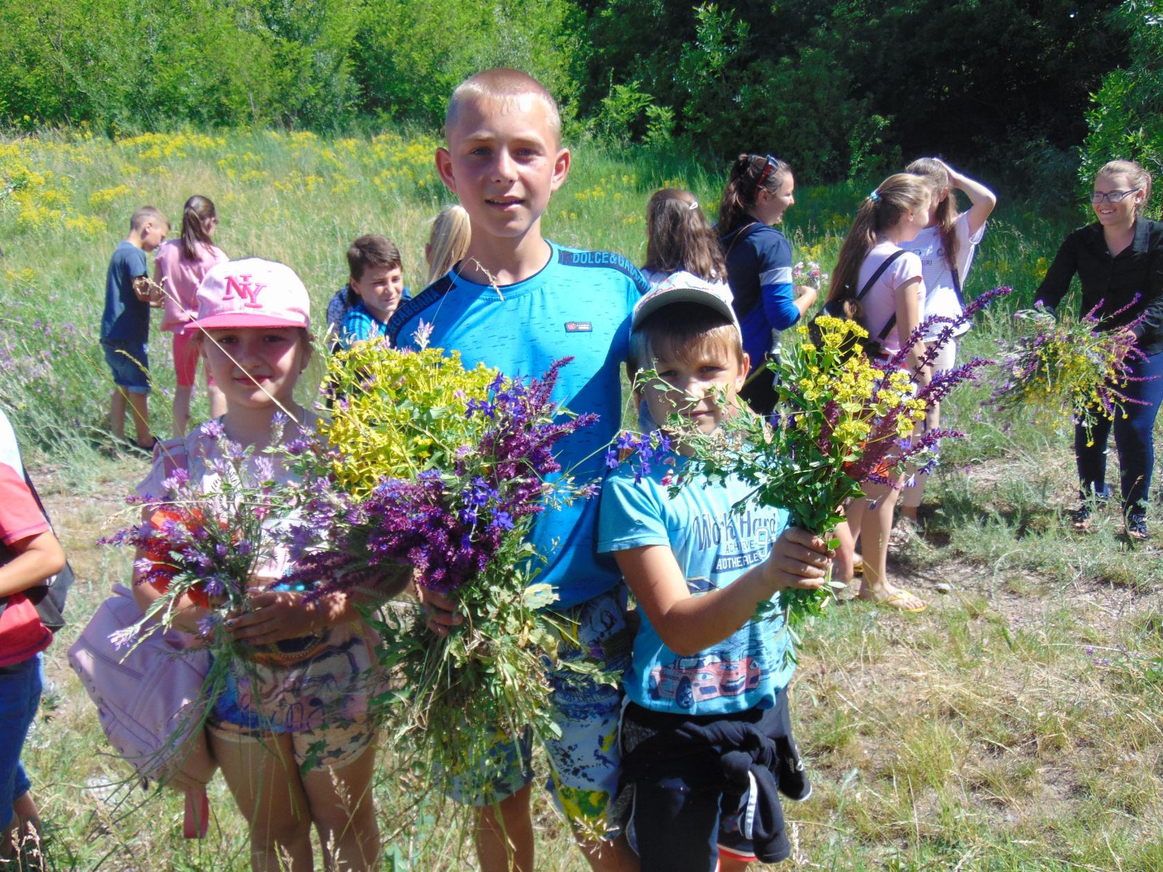 "За здоров"ям з рюкзачком" вирушили вихованці табору "Бригантина". Головна мета походу - назбирати польових квітів, дізнатися більше про лікарські рослини, які ростуть на території нашого села. Скільки позитивних емоцій отримали діти. Втомлені, але задоволені повернулися до табору, де пройшов конкурс на кращий віночок із польових квіток. Кожен із них був оригінальний, а значить - найкращий.